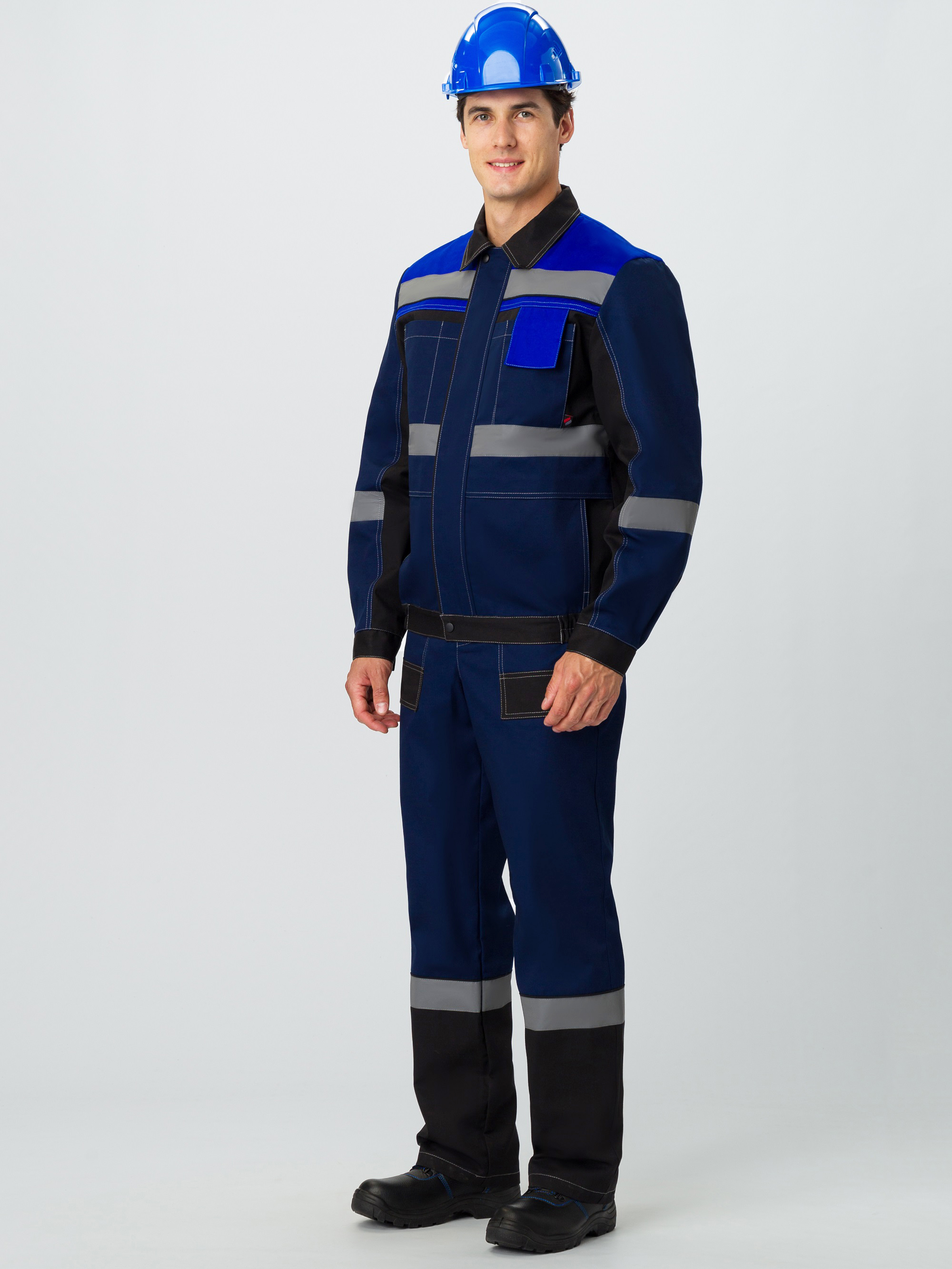 - по кокеткам, полочкам, спинке, рукавам и брючинам расположены световозвращающие полосы, что позволяет использовать костюм в условиях плохой видимости