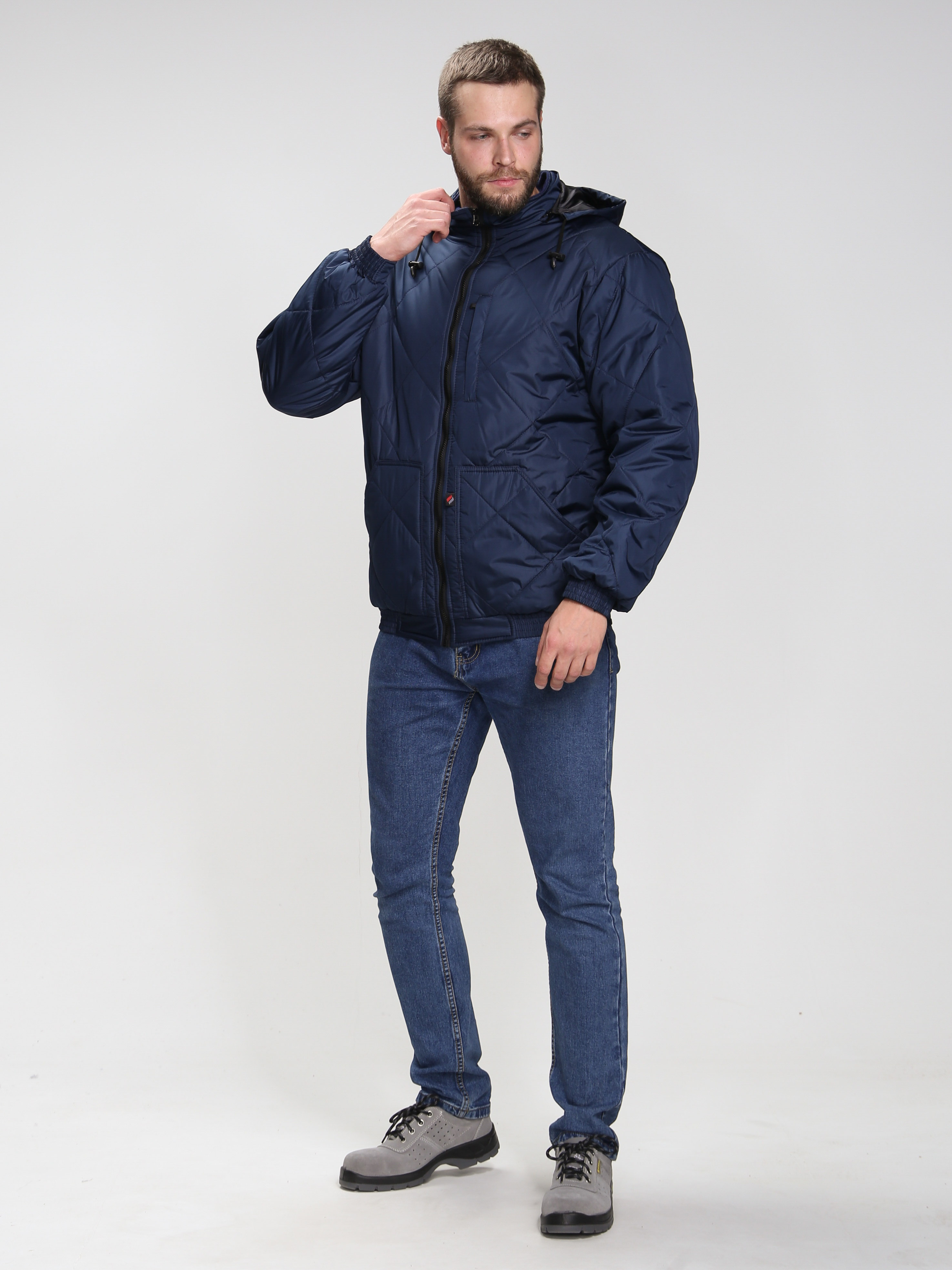 Куртка мужская демисезонная «Бомбер Люкс» зарекомендовала себя как в рабочей, так и повседневной деятельности. Стеганная куртка на подкладке из флиса отличается прекрасным внешним видом и стильным современным фасоном. Благодаря плотной ткани с влагоотталкивающей пропиткой и утеплителю синтепон куртка великолепно защищает от холода и осадков. Мужская короткая куртка с капюшоном застегивается на молнию и надежно закрывает шею от ветра с помощью воротника-стойки. При желании, капюшон можно отстегнуть или закрепить фиксаторами по овалу лица. Нижние утепленные стеганые карманы согревают руки в холодное время года, а верхний нагрудный карман на молнии подходит для хранения нужных мелочей. Дополнительно присутствует внутренний карман на липучке. Благодаря укороченной конструкции на поясе-резинке куртка отлично подходит водителям транспортных средств.