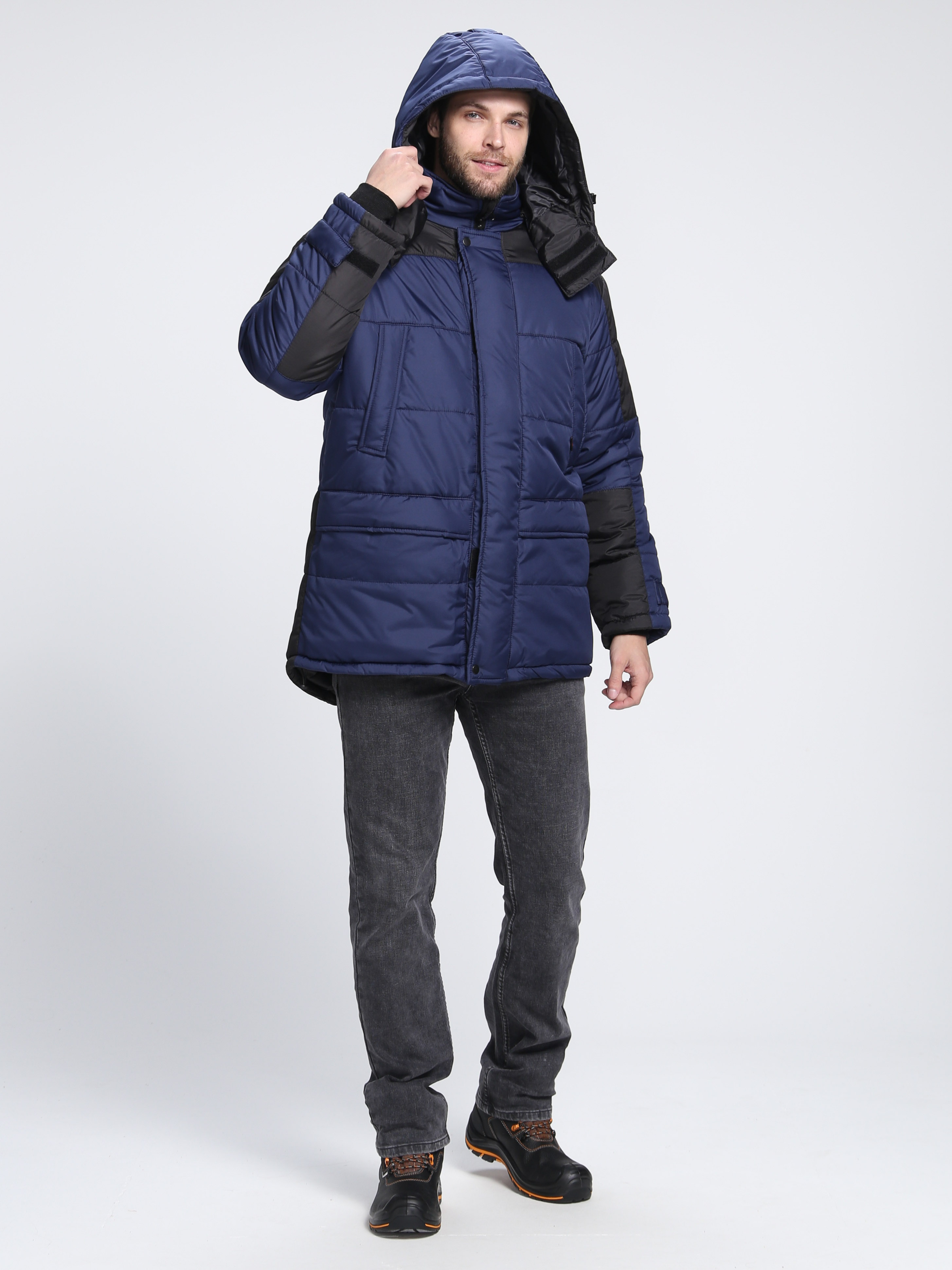 Мужская зимняя куртка «Европа» предназначена для комфортной работы при низких температурных режимах. Куртка рабочая зимняя замечательно садится по фигуре и не пропускает холод: низ куртки утягивается эластичным шнуром, на рукавах предусмотрены трикотажные манжеты, удлиненная фигурная спинка закрывает поясницу. Спецодежда производится из ткани с влагоотталкивающей пропиткой, благодаря чему отлично защищает от осадков. Плотный слой утеплителя и ветрозащитная планка на кнопках надежно сохраняют тепло, а воротник-стойка с нижним воротником из флиса укрывают шею. Объемный утепленный капюшон закрывает голову, регулируется шнуром по лицевому вырезу, может отстегиваться. Для хранения документов предусмотрен нагрудный карман на молнии формата А4, в дополнительных боковых карманах удобно хранить личные вещи.